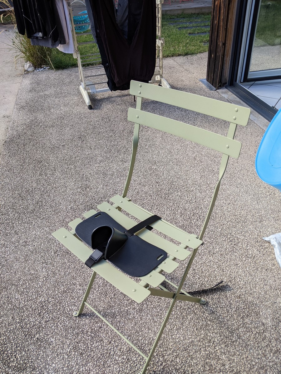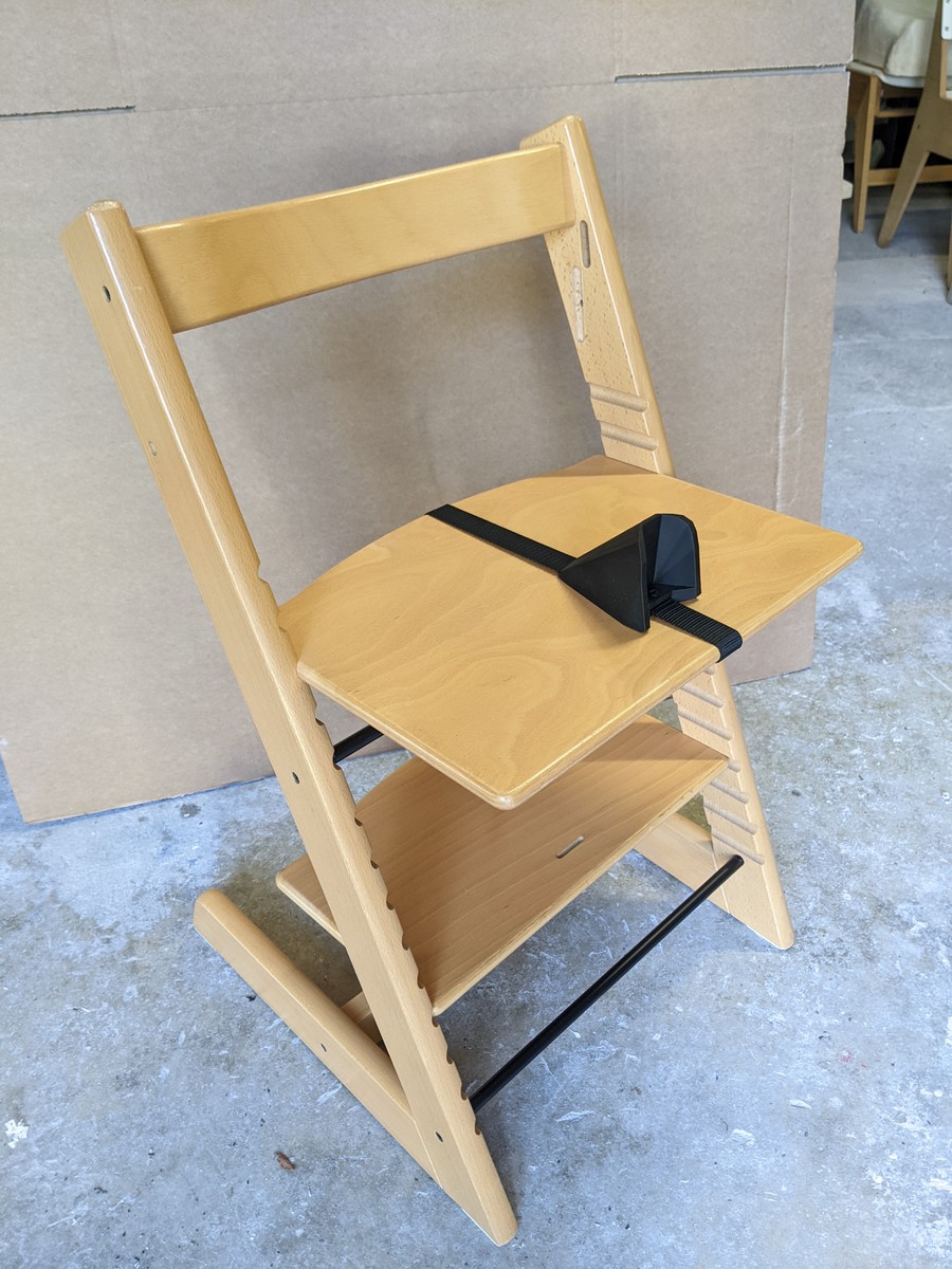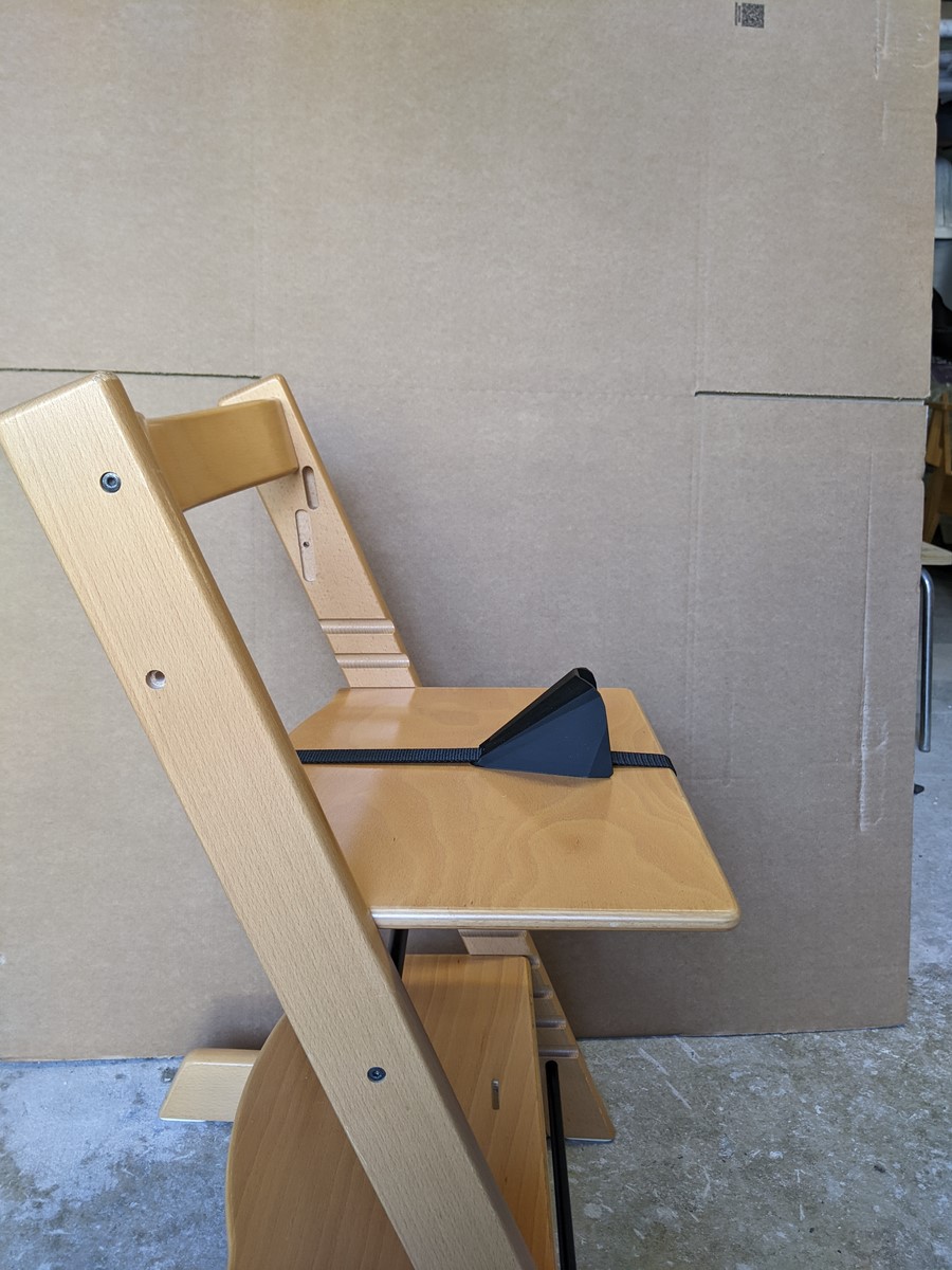 Plot réglable sur accroche par emboitement. Permet d’installer un plot sur une chaise Wesco ou Tripp trapp, sans perçage.